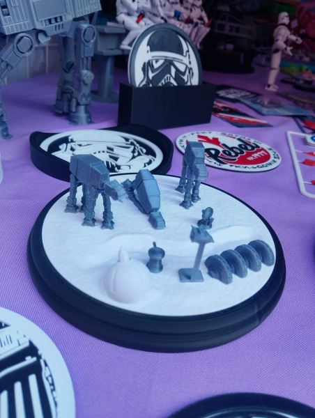 Revive uno de los enfrentamientos más épicos de la saga galáctica con este diorama artesanal inspirado en el gélido planeta Hoth. Esta escena en miniatura captura con gran detalle un momento clave del asalto en la base rebelde, incluyendo vehículos de combate, edificaciones y equipamiento del entorno helado.