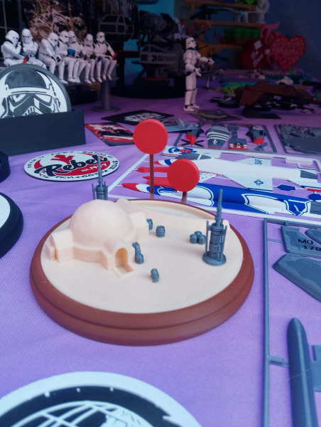 Sumérgete en el universo de Star Wars con este increíble diorama inspirado en el icónico planeta desértico Tatooine. Modelado con precisión y fabricado mediante impresión 3D de alta calidad, este escenario recrea una vivienda clásica del planeta natal de Luke Skywalker, acompañado de detalles que dan vida a la escena.