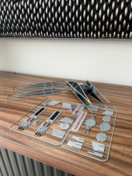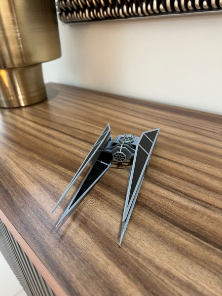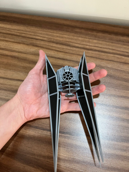 Una vez completado, el TIE Silencer destaca por su presencia visual y nivel de detalle, convirtiéndose en una pieza imponente dentro de cualquier colección de Kit Cards o maquetas de Star Wars.