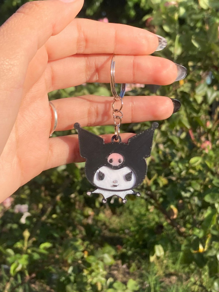 Este llavero impreso en 3D presenta la icónica cara de Kuromi, el personaje de Sanrio que combina encanto y rebeldía en una sola expresión. Su diseño destaca por su estilo alternativo y tierno, perfecto para quienes disfrutan de los accesorios con carácter.