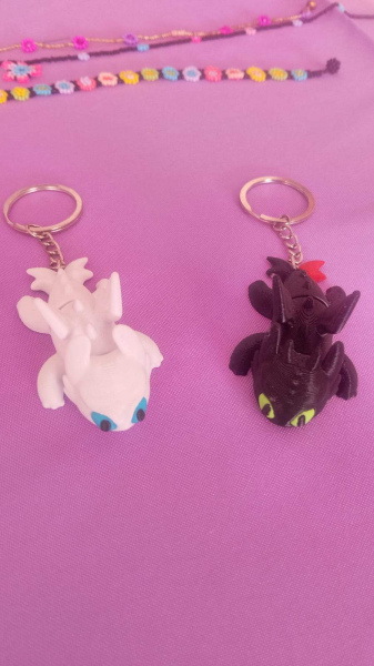 Fabricados en impresión 3D con PLA, ambos llaveros son livianos, resistentes y cómodos para llevar en llaves, mochilas, estuches o como accesorio decorativo. El diseño conserva la esencia adorable de ambos personajes: la ternura elegante de Furia Luminosa y el estilo expresivo y encantador de Chimuelo.