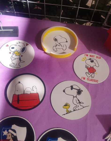Este set incluye cuatro posavasos con ilustraciones diferentes de Snoopy, cada uno con un diseño único que representa su estilo tierno y clásico. Están fabricados en material PLA mediante impresión 3D, lo que les entrega una textura distintiva, buena durabilidad y un acabado limpio ideal para uso diario o decoración.